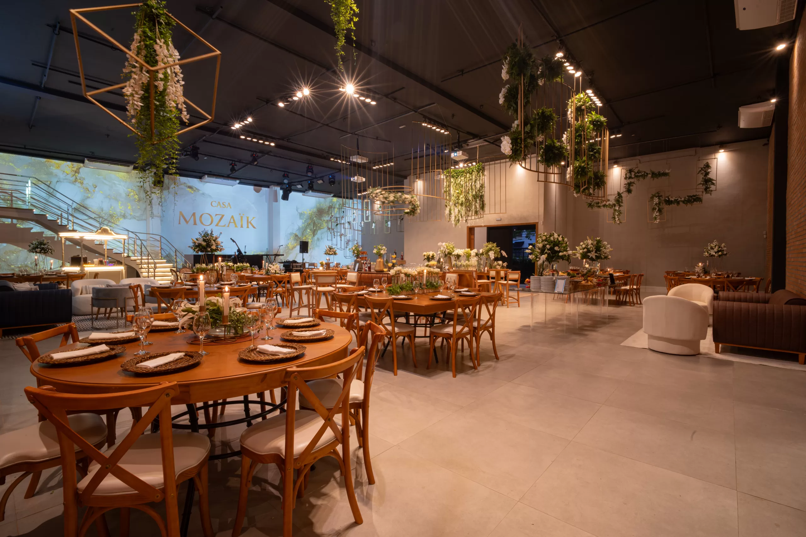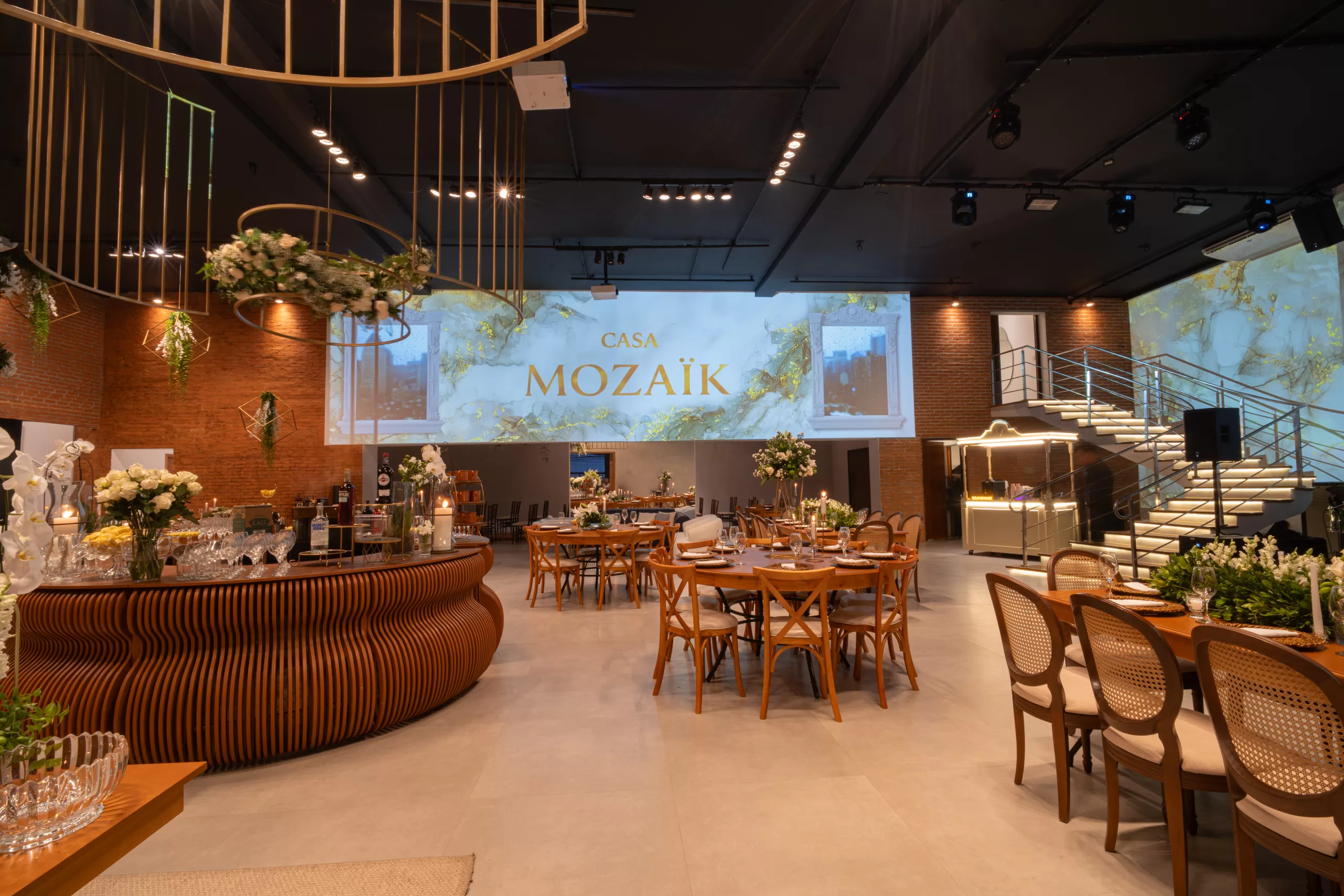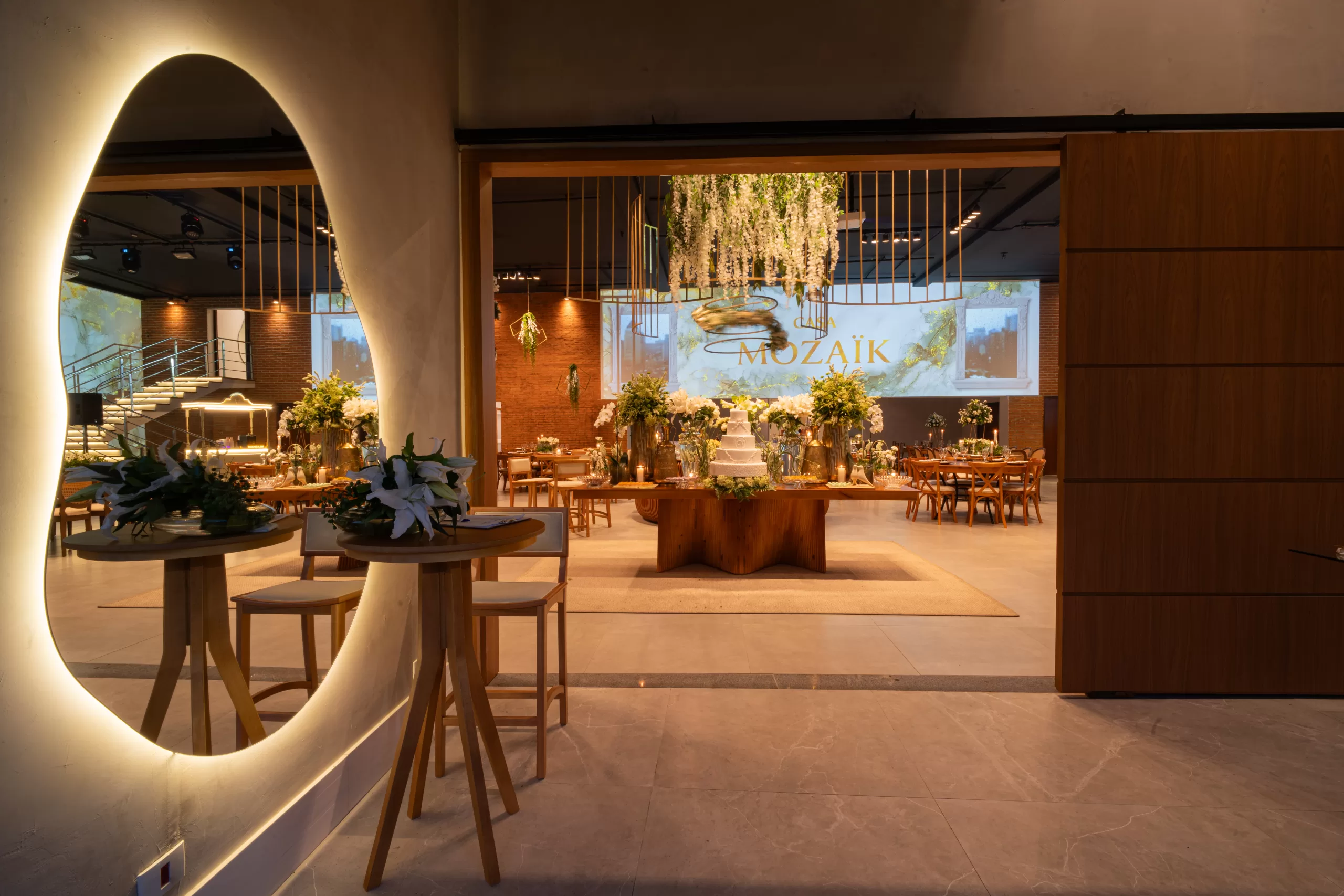 Localizada estrategicamente na Vila Leopoldina, a apenas um minuto do Parque Villa-Lobos, a Casa Mozaïk é o cenário perfeito para transformar seu casamento em uma experiência inesquecível. Com 500 m² sem colunas, pé-direito de 6 metros e a maior projeção mapeada de São Paulo, cada detalhe do seu dia especial ganha um toque de espetáculo único. Receba até 250 convidados em jantar ou 350 em formato de festa, com toda a infraestrutura completa: mobiliário sofisticado, iluminação cênica, som, bar, gastronomia, decoração e equipe especializada. Um espaço criado para que cada casal viva o protagonismo que seu grande dia merece.